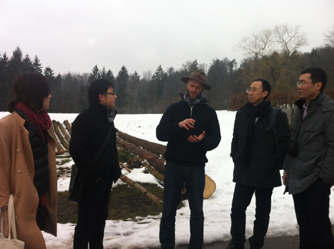 2月19日張(zhang)建偉一行(xing)參觀了(le)德(de)國典型(xing)有(you)(you)機(ji)(ji)農(nong)場Walcholderhof bei Murrhardt,農(nong)場位于德(de)國斯圖加(jia)特東北部山區(qu),周圍(wei)森林環(huan)繞,生態環(huan)境優良(liang)。據農(nong)場主David介紹(shao),農(nong)場面積40公(gong)頃,養殖牛(niu)、羊(yang)、馬、兔(tu)4個品種(zhong)(zhong),種(zhong)(zhong)植蘋果、梨、桃子等3個果樹品種(zhong)(zhong),同時(shi)在每年的6-10月份會種(zhong)(zhong)植5公(gong)頃的蔬(shu)菜。農(nong)場通(tong)過釋放天敵來(lai)減輕病(bing)蟲害(hai)的發生,遵照當(dang)地(di)有(you)(you)機(ji)(ji)認證機(ji)(ji)構Bioland的要求(qiu)生產,并獲得該機(ji)(ji)構認證。施加(jia)的有(you)(you)機(ji)(ji)肥料是通(tong)過農(nong)場的牛(niu)糞(fen)(fen)和(he)羊(yang)糞(fen)(fen)與其他有(you)(you)機(ji)(ji)質堆(dui)制發酵腐熟而成(cheng),用(yong)于保持和(he)增強土壤(rang)肥力。正谷產品與基地(di)部總(zong)監張(zhang)友(you)廷(ting)就種(zhong)(zhong)植有(you)(you)機(ji)(ji)蔬(shu)菜的病(bing)蟲害(hai)防治,以及有(you)(you)機(ji)(ji)耕種(zhong)(zhong)與常規種(zhong)(zhong)植產量(liang)的變化,與David進(jin)行(xing)了(le)討(tao)論。